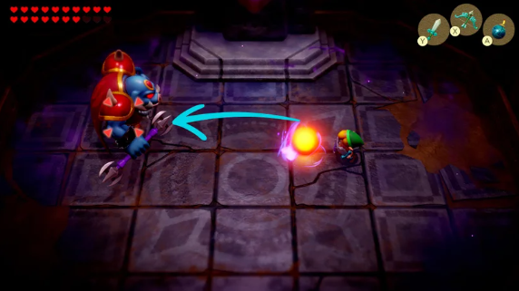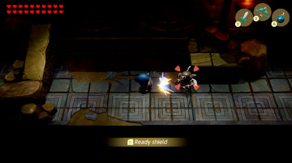 안전하게 진행하고 싶다면 왼쪽 트리거(ZL)를 눌러 방패를 들어 막고, 반격하자.
