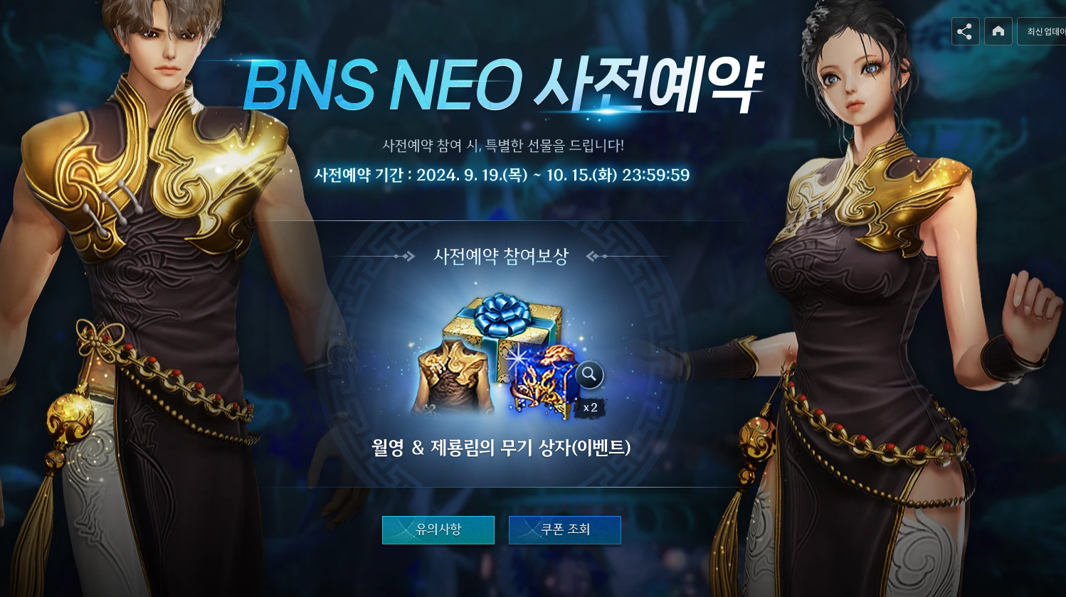 엔씨소프트의 블소 신규 서버 BNS NEO 이미지와 함께, 블소는 서버 오픈 기념 이벤트를 실시합니다. 게임에 접속하는 모든 플레이어에게 특별 보상이 제공되요.