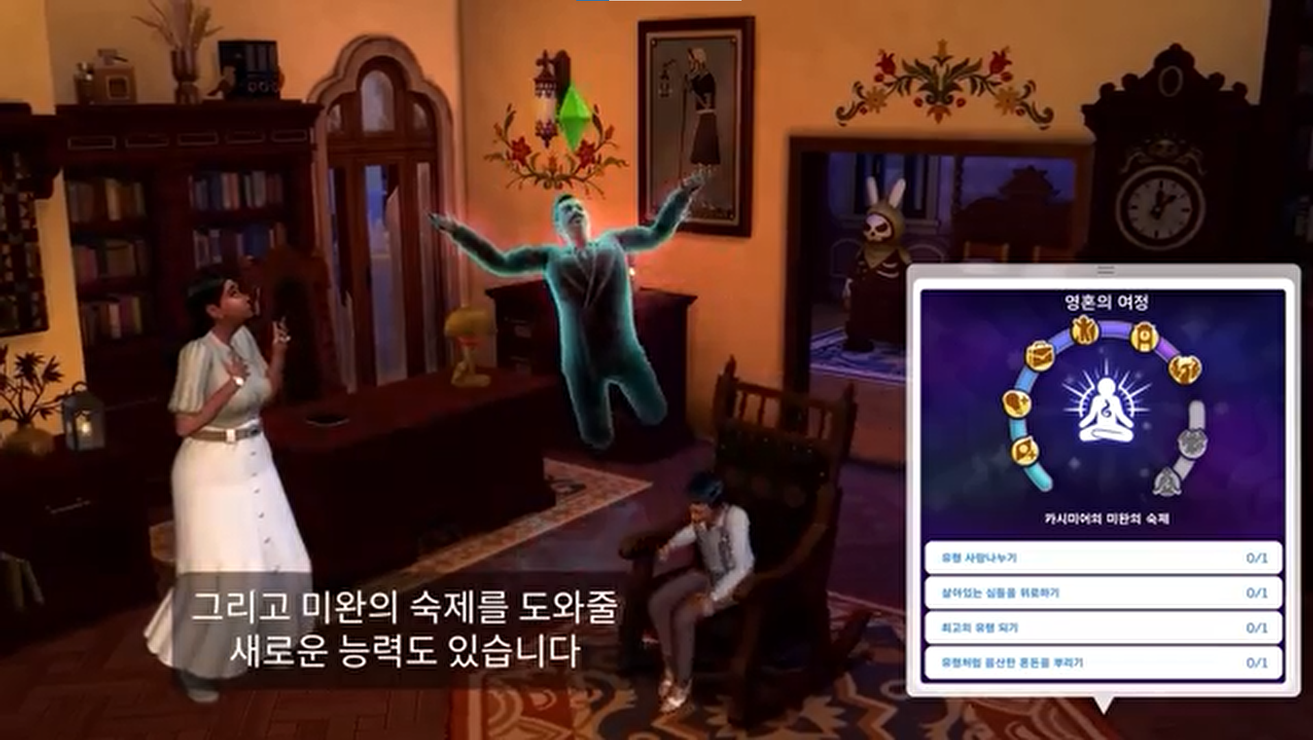 공개된 트레일러는 '삶과 죽음' 확장팩의 다양한 콘텐츠를 소개하고 있습니다. 플레이어들은 인생의 목표를 탐색하고, 버킷 리스트를 작성하며, 미처 이루지 못한 일들을 해결하기 위해 저승 세계에 발을 내딛을 수 있습니다. 또한, 새로운 유령 능력을 활용하여 특별한 경험을 쌓을 수 있습니다.