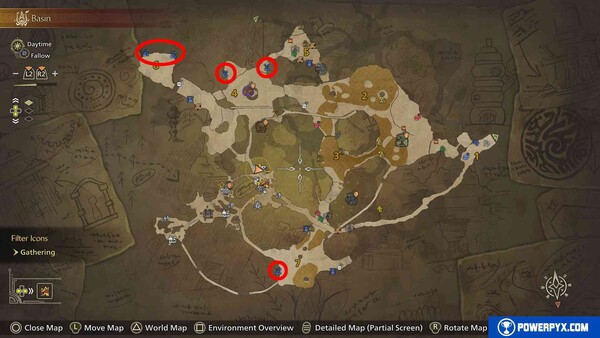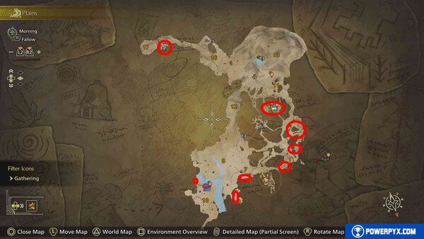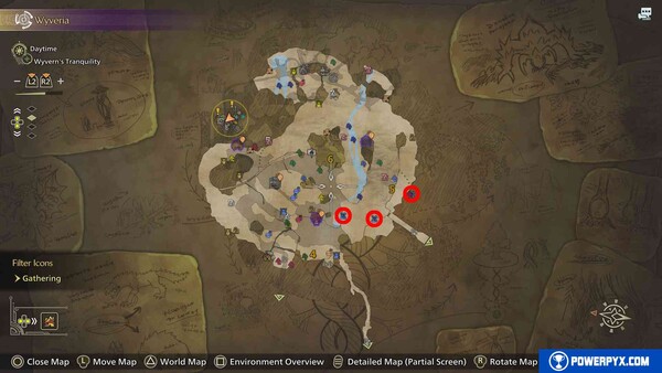 - 노바크리스털은 희소도 7로, 빨간색 원으로 표시된 지도 위치에서 무작위로 채굴되며 드랍률이 매우 낮습니다. 최고의 금속 가공에 사용됩니다.
